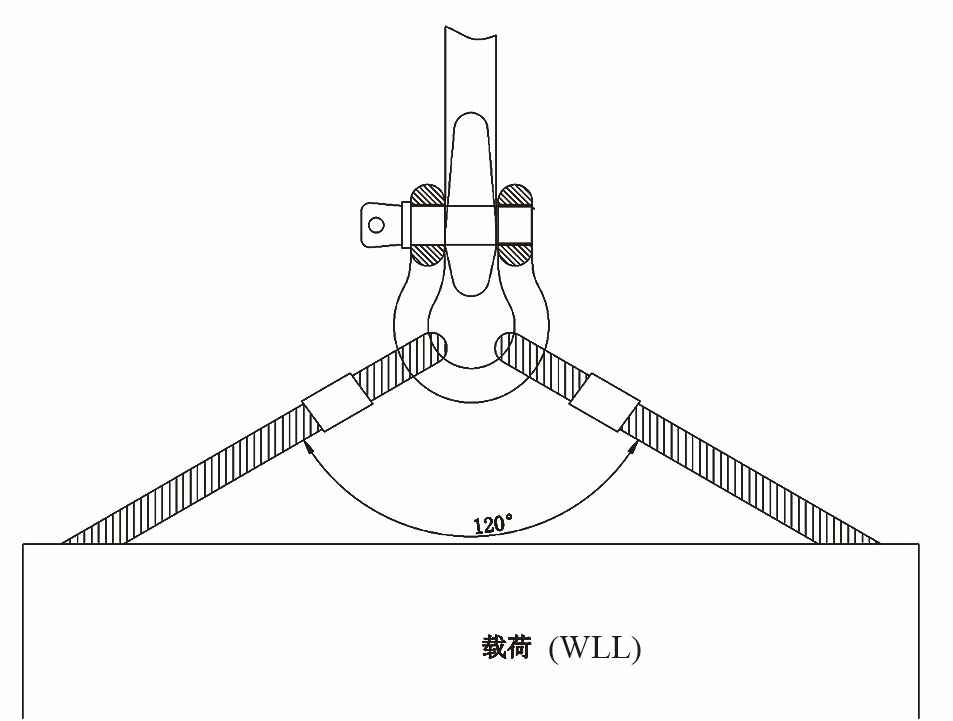 7.卸扣承载的两腿索具间的最大夹角不得大于120度(如下图)。
